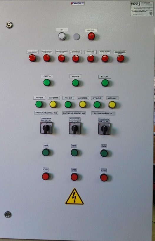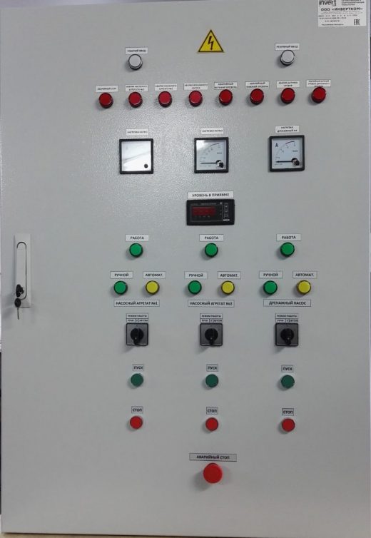 Шкаф управления (СУГН) канализационными насосными агрегатами – предназначен для управления работой и защиты от аварийных режимов насосных агрегатов канализационной насосной станции.
